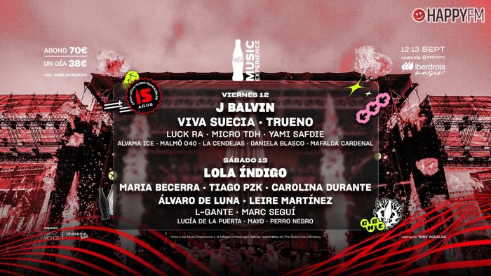 El lineup del 15º aniversario de ‘Coca-Cola Music Experience’ abarca géneros como reggaetón, pop, rock y música electrónica, con artistas como Viva Suecia, Alvama Ice, Daniela Blasco o Tiago PZK, entre otros. Esto asegura que todos en el grupo encuentren algo que les apasione, creando recuerdos conjuntos mientras cantan y bailan sus canciones favoritas.