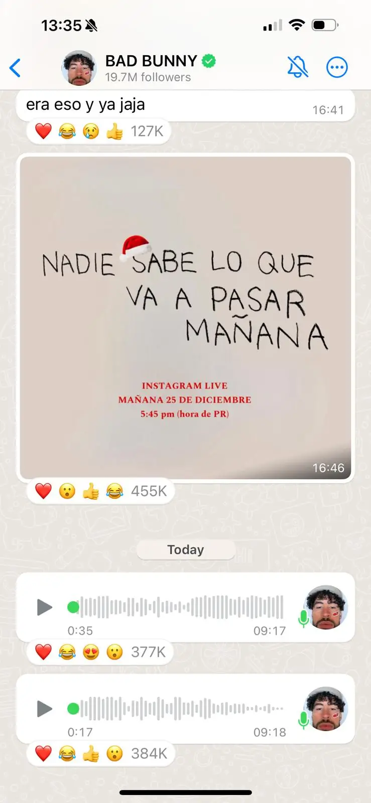 Bad Bunny: El primero en probar su Canal de Voz de WhatsApp