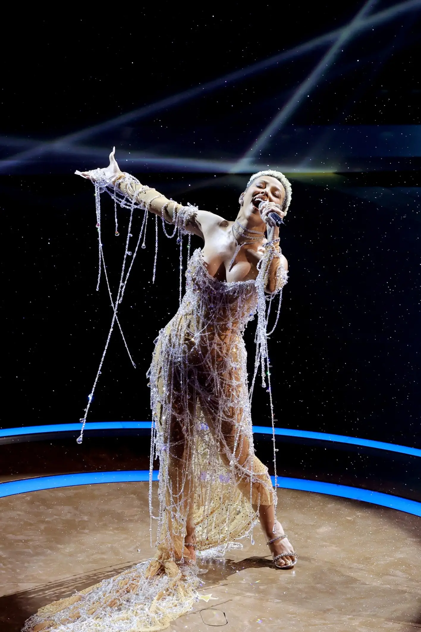 Doja Cat por su parte, actuó con un impresionante vestido a medida diseñado para ella por Brett Alan Nelson, su director creativo desde hace muchos años. El vestido está compuesto por más de un millón de cristales de Swarovski que parecen flotar alrededor de su cuerpo. El look se completó con un collar Swarovski Matrix y, un collar Matrix Tennis, una pulsera Millenia Tennis, una gargantilla Matrix y unos ear cuffs Matrix a juego. Simplemente espectacular.