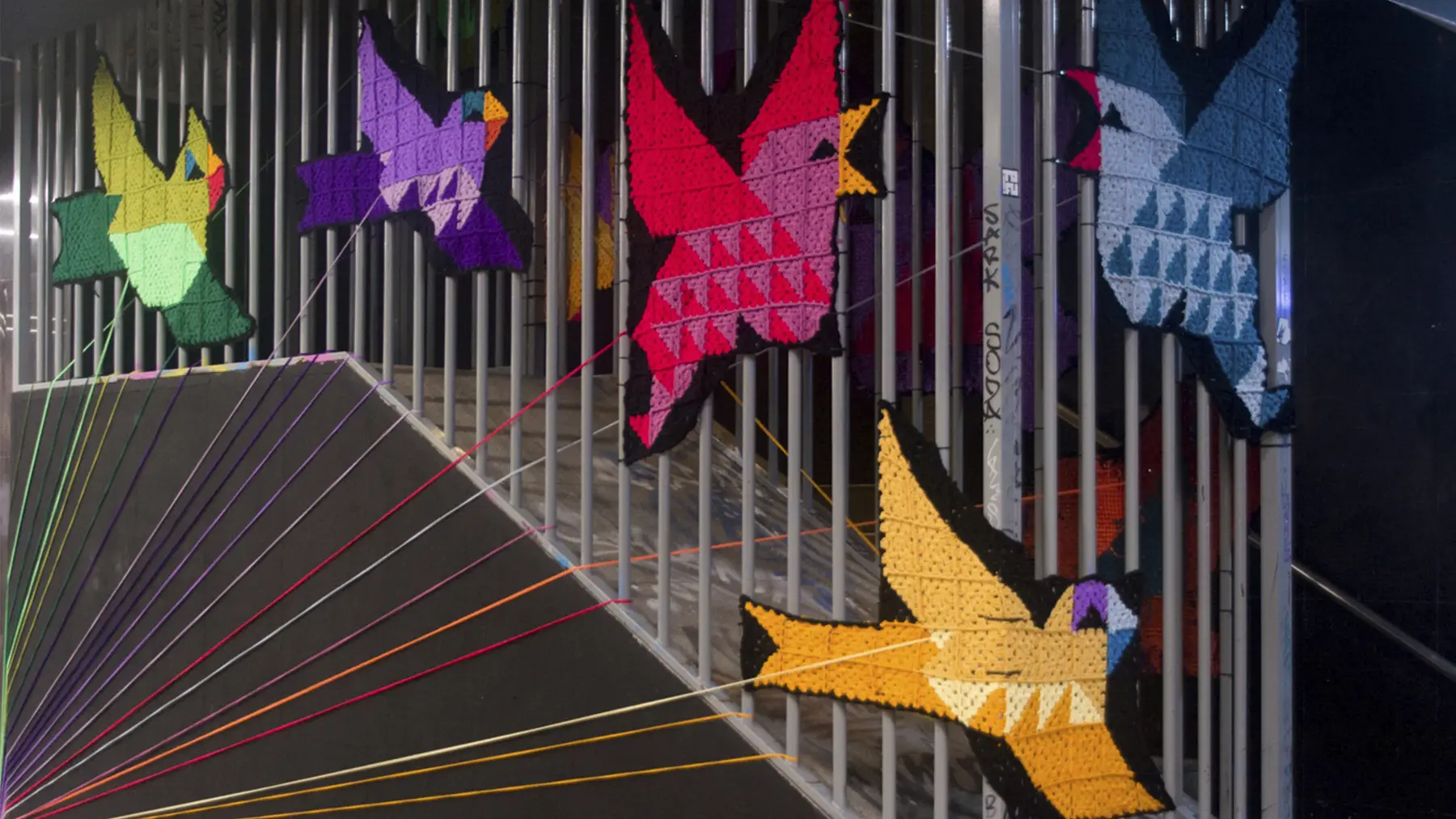 11 intervenciones pictóricas, 1 intervención en la escalera, 2 de tape-art, 1 intervención tejida y 1 muro rotativo conviven con la cotidianidad de este núcleo urbano, por el que pasan cada día muchísimas personas, desde las van a los juzgados y a las oficinas, o a los que quieren disfrutar de los planes de ocio como el cine, restauración o a vivir la noche madrileña.