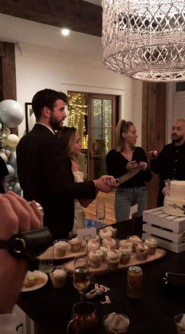 Ha sido Conrad Carr, amigo de la pareja, el encargado de compartir en sus historias de Instagram esa fotografía en la que aparecen Miley Cyrus y Liam Hemsworth a punto de cortar una tarta, aparentemente vestidos para la ocasión, aunque es cierto que no es fácil de apreciar.