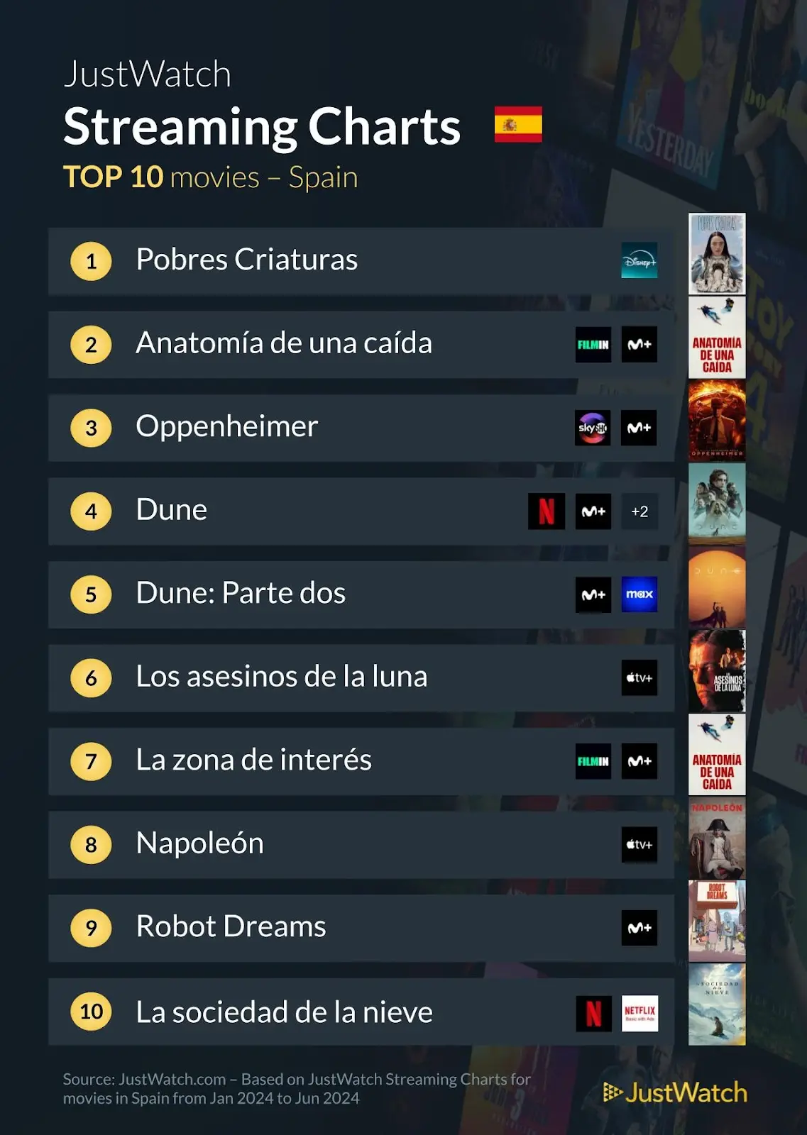 Concluido el mes de junio, hemos superado los primeros 6 meses del año y JustWatch, la guía de contenido en streaming más grande del mundo, acaba de publicar el ranking semestral de las películas y series de TV más populares en España durante la primera mitad de 2024. Interesante saben cuáles son.